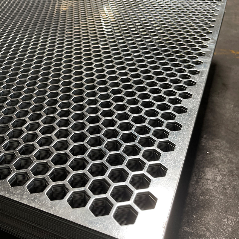 六角冲孔网是用六角模具在数控冲床上连续冲压而成的网状制品。 产品精度达到+/-0.15MM,可冲0.8-10mm范围内的板材。 由于铝板本身重量很轻,而且网孔均匀,铝板不易腐蚀,所以也是板材冲孔的不错选择。