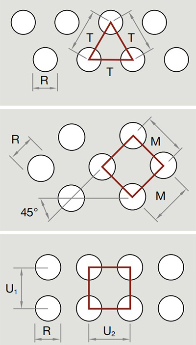 | Round, in 60°staggered rows | |||