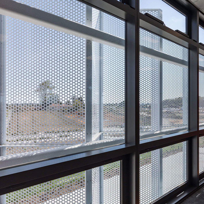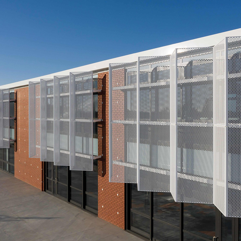 穿孔金属板广泛用于外部阳光控制系统。 为此,面板使人们享受舒适的工作环境而不会刺眼的阳光,并保持空气流入建筑物并调节温度。 此外,这种采用也为建筑外墙增添了活力。 穿孔金属防晒霜的最佳选择材料是铝或铝合金。 成品具有很高的强度重量比,即使在长期的阳光照射下也能抵抗老化。